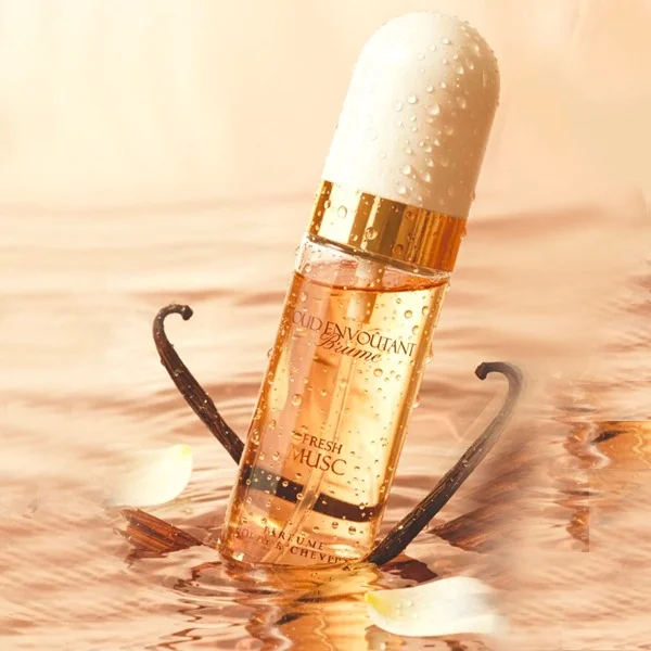 Vaporise la brume parfumée sur le corps et les cheveux pour une sensation de fraîcheur immédiate et un premier sillage léger. - Préparation avec le Gel Parfumé