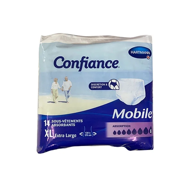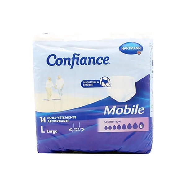 Le Hartmann Confiance® mobile 8 gouttes Taille M/NUIT 14U est conditionné dans un paquet de 14 slips absorbants, vous offrant un approvisionnement pratique et suffisant.