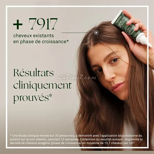 Le Sérum Pousse est cliniquement prouvé pour augmenter la densité capillaire de 7917 cheveux en phase de pousse. Sa formule, à 98% d’ingrédients d’origine naturelle, est enrichie d’un extrait de pousse de pois.