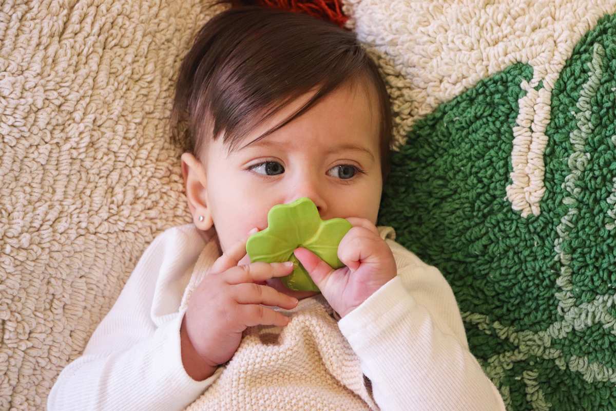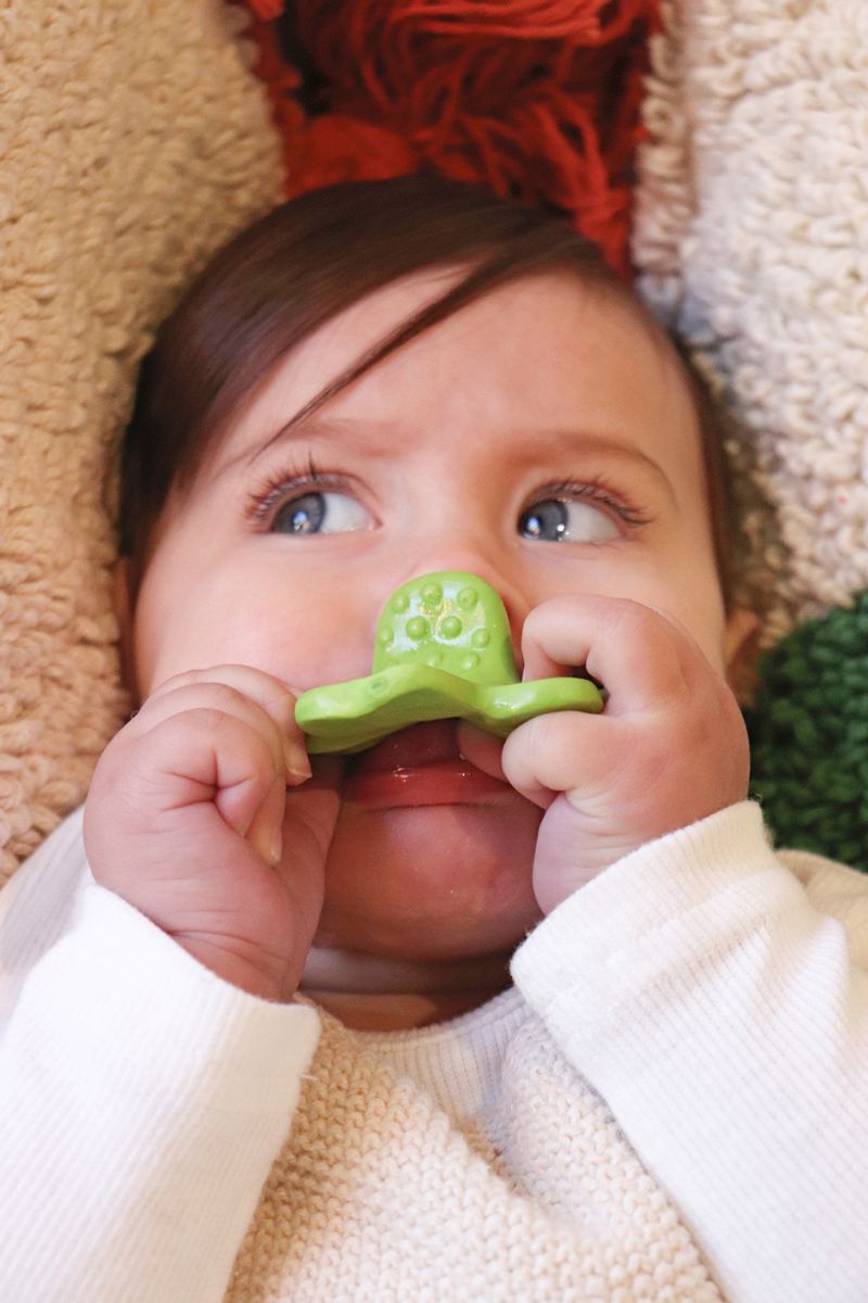 Ce mini “trèfle” en caoutchouc de chez Oli and Carol est un petit anneau de dentition indispensable à l’arrivée des premières dents de bébé ! Sa petite taille le rend facile à tenir et les différentes textures à mâchouiller permettent de soulager les gencives.
