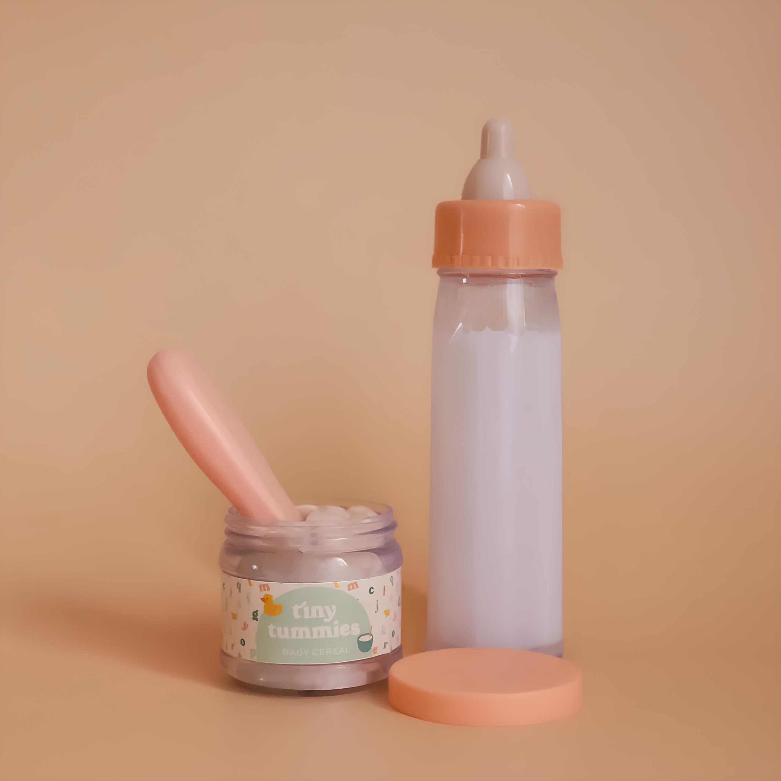 🫙 1 petit pot magique dont la cuillère se remplit en la plongeant dans le pot et qui se vide au contact de la bouche de la poupée ou peluche, créant ainsi l’illusion qu’elle mange réellement. Le couvercle du petit pot diffuse une douce odeur rappelant son contenu (céréales ou chocolat).