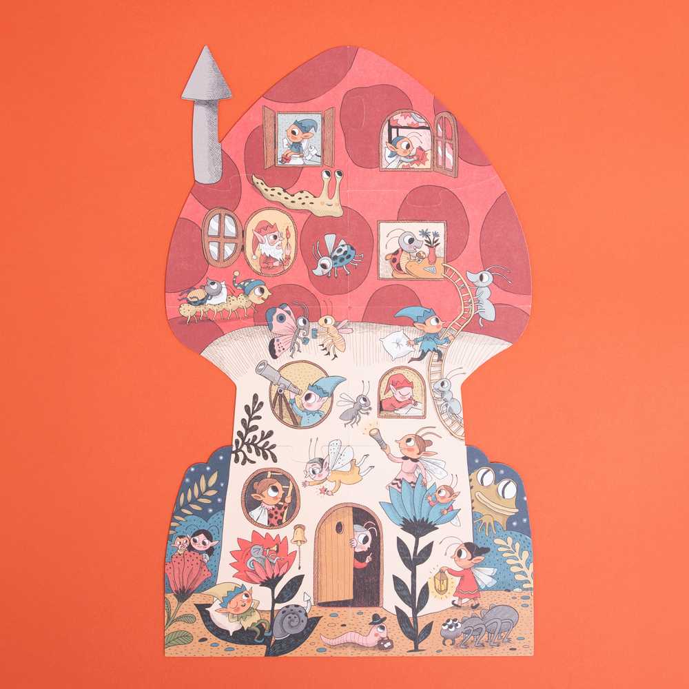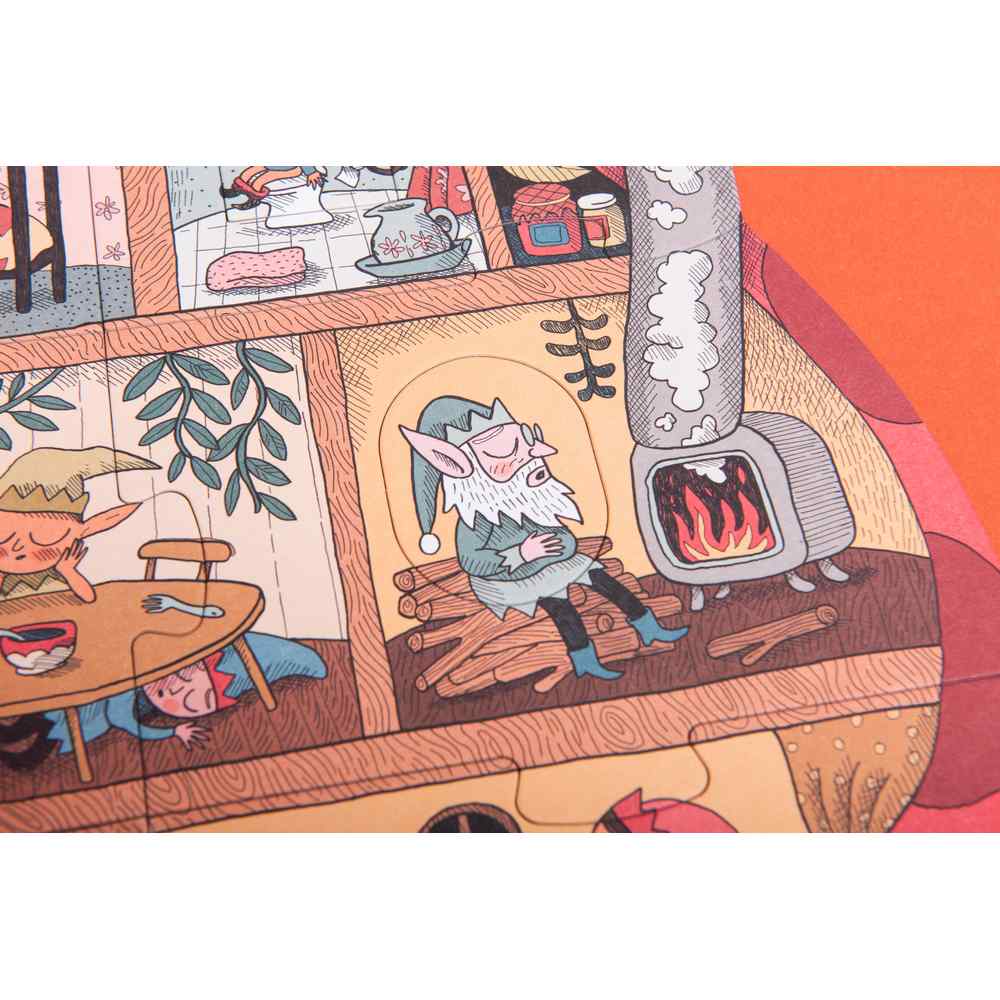 Ce puzzle réversible “sweet dreams” de chez Londji contient 18 pièces et représente la fée du sommeil chez des lutins qui habitent dans un champignon. D’un côté les lutins sont éveillés et de l’autre ils dorment profondément après le passage de la fée du sommeil.